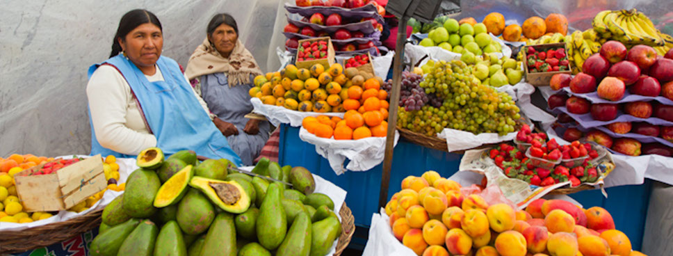 mercado indígena de La Cancha, colina de la Coronilla. Almuerzo en un restaurante de la